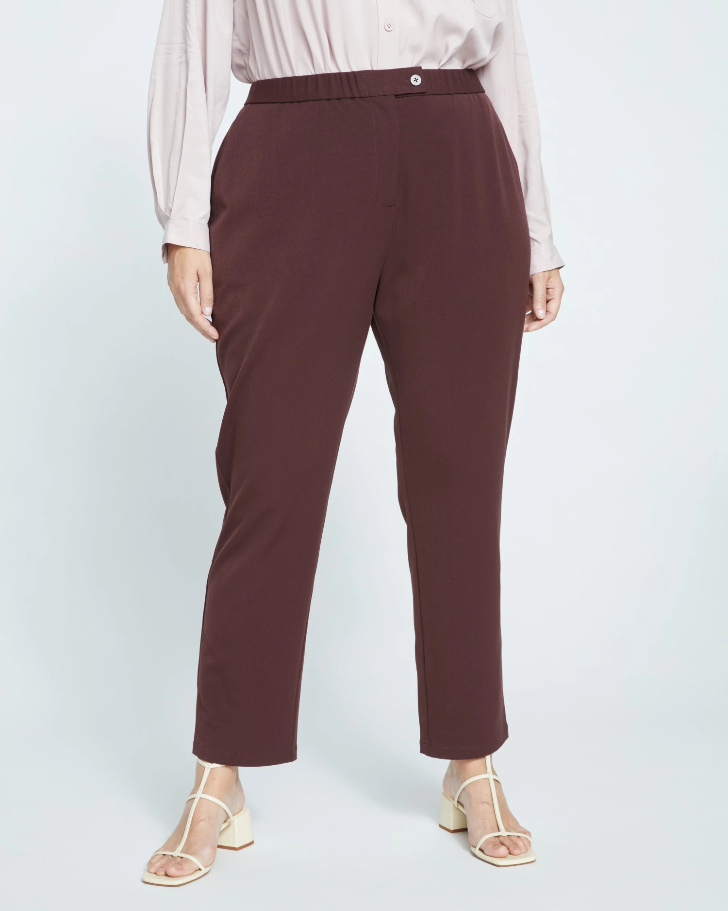Meet the perfect, all-day-polished pants. Tailored in a cigarette pant silhouette, they’re a dressier version of your Ponte favorites and made to keep you looking fresh from your desk to dinner plans. In a sustainable twill-like fabric that’s super light and resilient (it bounces back incredibly well), they’re perfect for everyday movement, commuting, and wearing right out of your suitcase when traveling. Key details include the elasticated waistband, slash front pockets, welt back pockets, and shaping darts at the back.