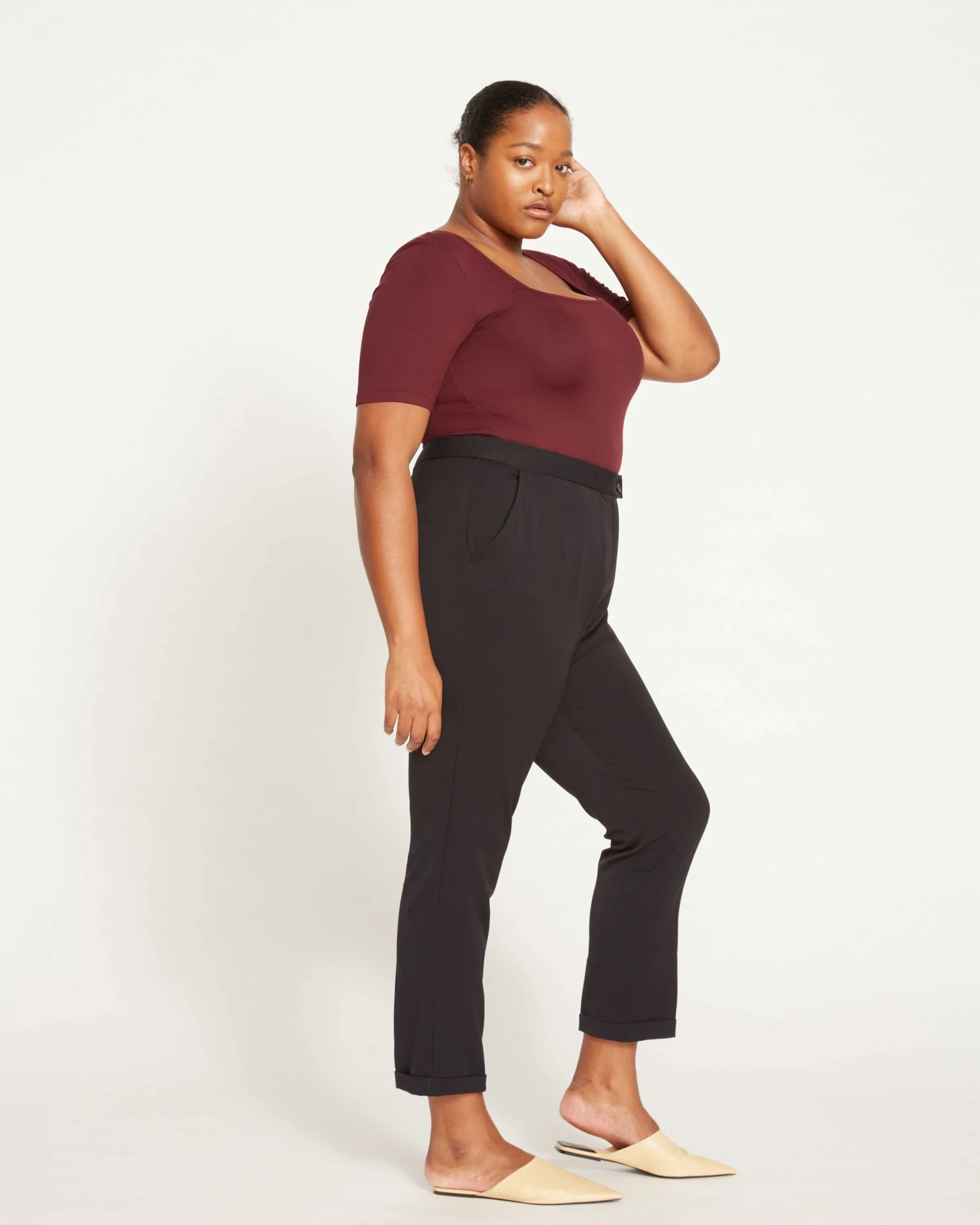 Meet the perfect, all-day-polished pants. Tailored in a cigarette pant silhouette, they’re a dressier version of your Ponte favorites and are made to keep you looking fresh from your desk to dinner plans. In a twill-like fabric that’s super light and resilient (it bounces back incredibly well), they’re perfect for everyday movement, commuting, and wearing right out of your suitcase when traveling. Key details include the elasticated waistband, slash front pockets, welt back pockets, shaping darts at the back, and cuffs at the hem.