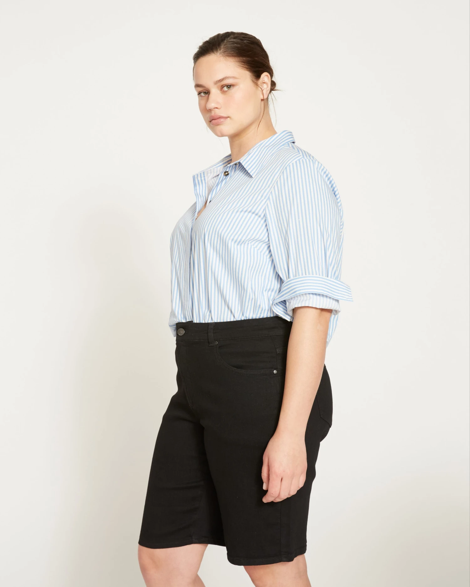 The Bae Denim Shorts are like we took your favorite, coziest pair of jeans and made them shorts. Because, well, we did. Designed for a comfy relaxed fit just like our best-selling Bae Boyfriend Jeans but with an 11″ inseam that hits just above the knee. Made from our signature hidden-stretch denim that feels so good, you’ll forget you’re wearing denim. Engineered with an easy fit that you can roll up for a styled look or leave unrolled for a little extra length.