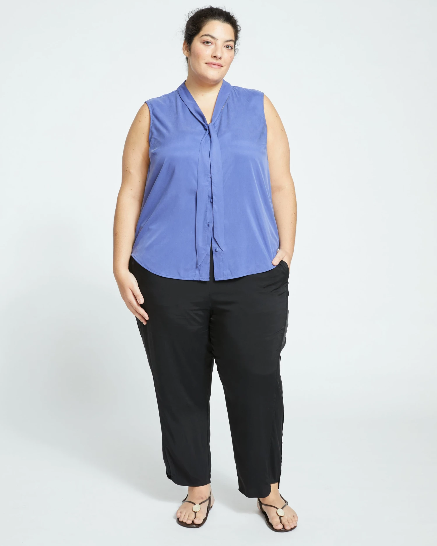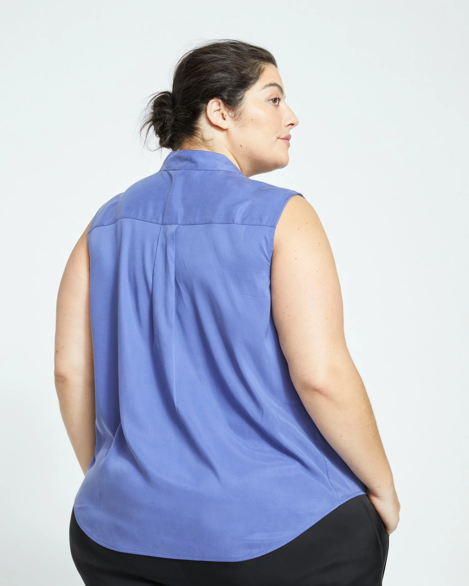 Fall in love with this romantic sleeveless top. Made from our stretch cupro, it feels smooth as silk and will keep you feeling cool. It features a neck tie that you can wear fastened or open and a full placket with fabric-covered values. This style screams tropical getaway.