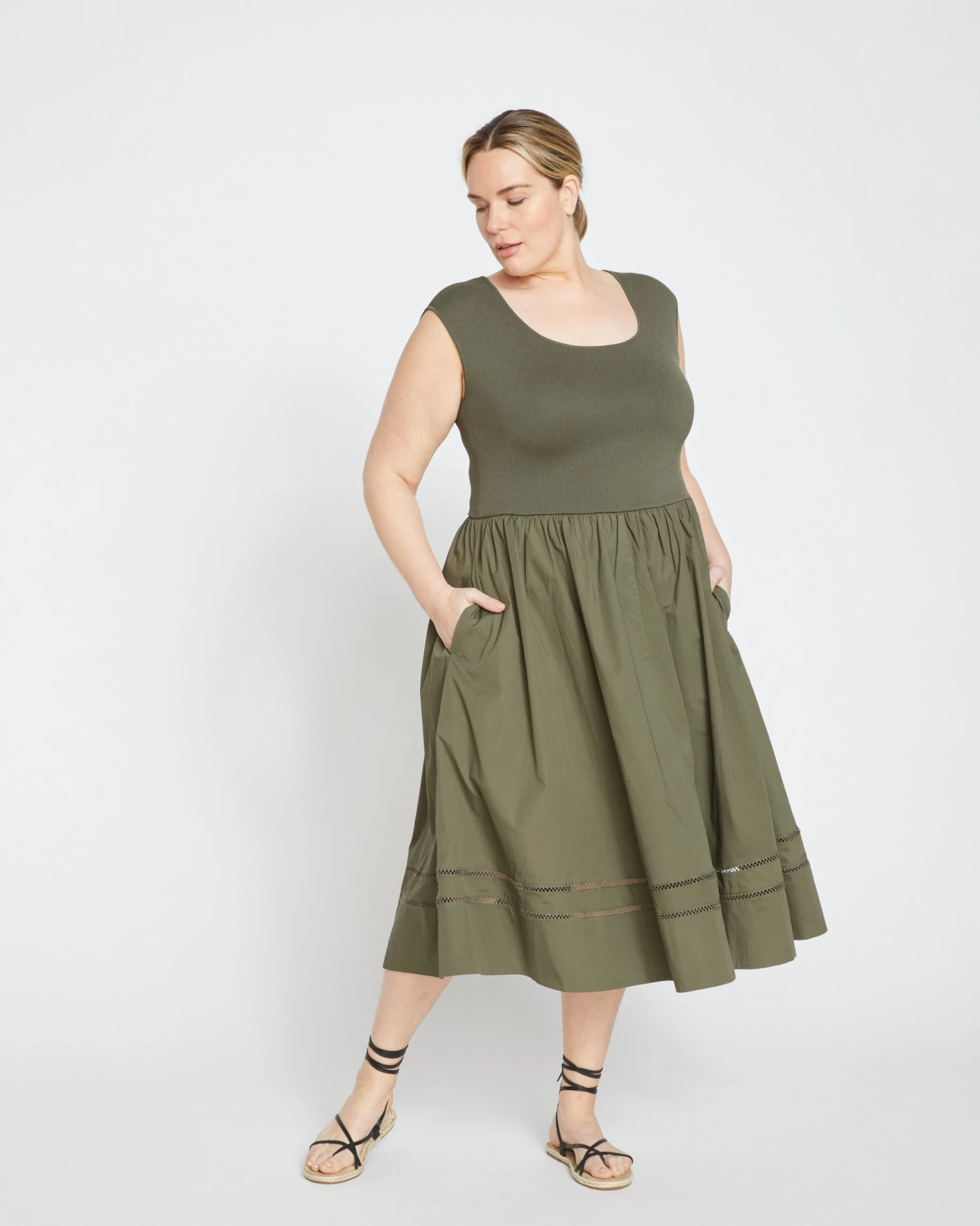 This dress was made for you. It’s perfect for spring parties, summer cocktail soirees, and just about anything else. We wanted to design a dress that you’d have forever – chic and classic but still detailed enough to feel like a treasure. It features a thick knit top with stretch and a crisp poplin skirt with delicate windowpane stitch detailing along the hem. The square neckline and cap sleeves look modern and elegant but the best part is that they offer ideal coverage.