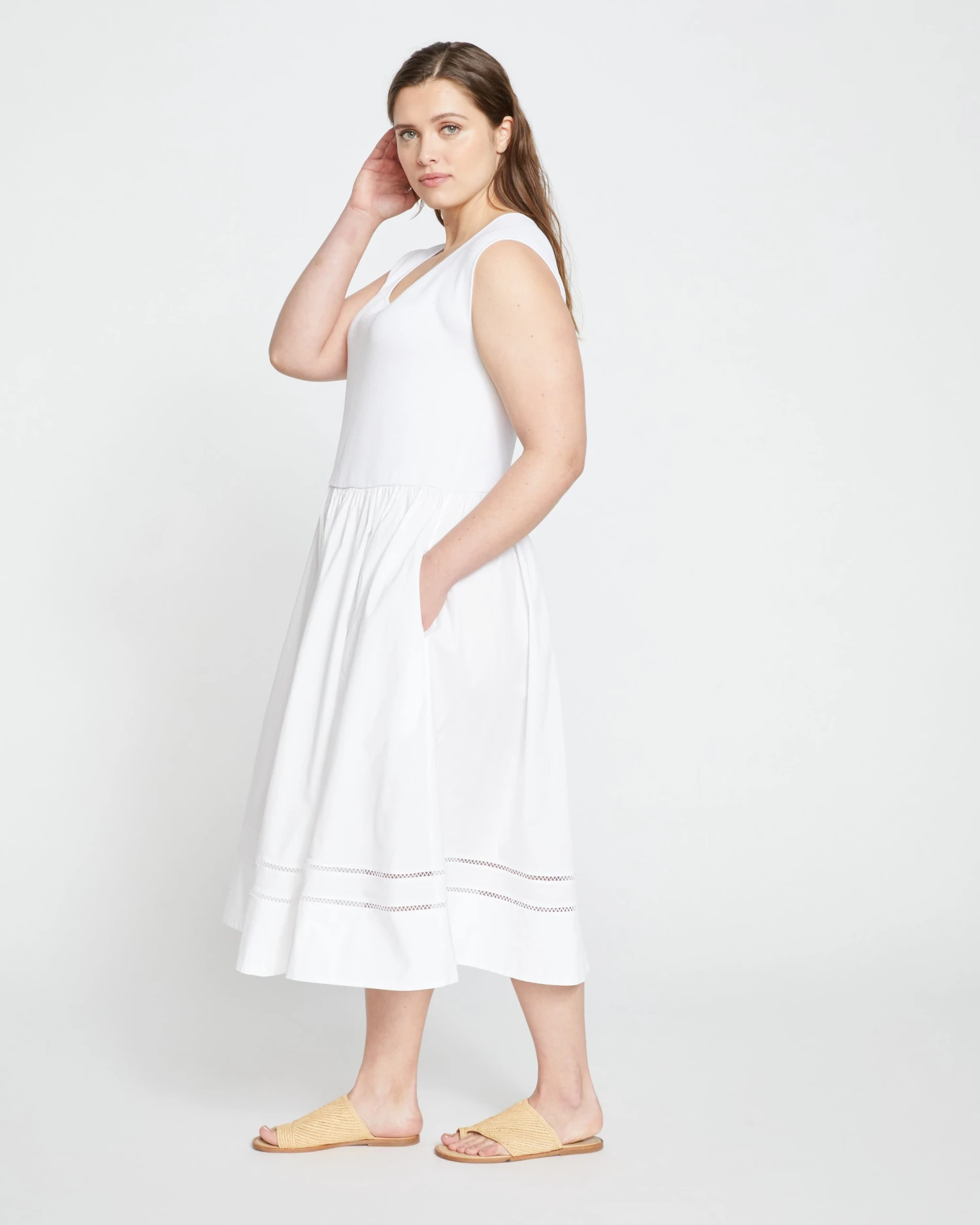 This dress was made for you. It’s perfect for spring parties, summer cocktail soirees, and just about anything else. We wanted to design a dress that you’d have forever – chic and classic but still detailed enough to feel like a treasure. It features a thick knit top with stretch and a crisp poplin skirt with delicate windowpane stitch detailing along the hem. The square neckline and cap sleeves look modern and elegant but the best part is that they offer ideal coverage.
