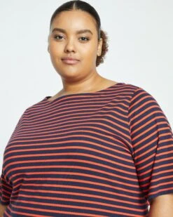 Belle Breton-Stripe Compact Jersey Dress – Ecru/Black Stripe