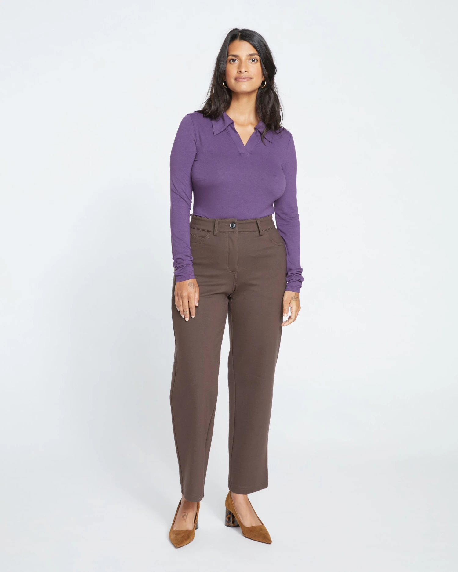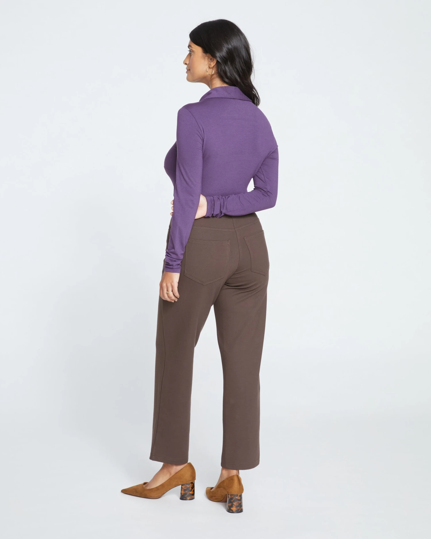Your favorite jeans are now in your favorite fabric. It’s time to take Etta to the office. Perfect for those with less than a 10” waist-to-hip difference, these pants are truly just as special as the jeans, but they’re crafted from our premium mid-weight Ponte. Soft, stretchy, and pilling-resistant, they feature denim details like belt loops, a zip fly and pockets. If that’s not enough to wow you, you’ll love the straight leg and classic 90’s-inspired fit.