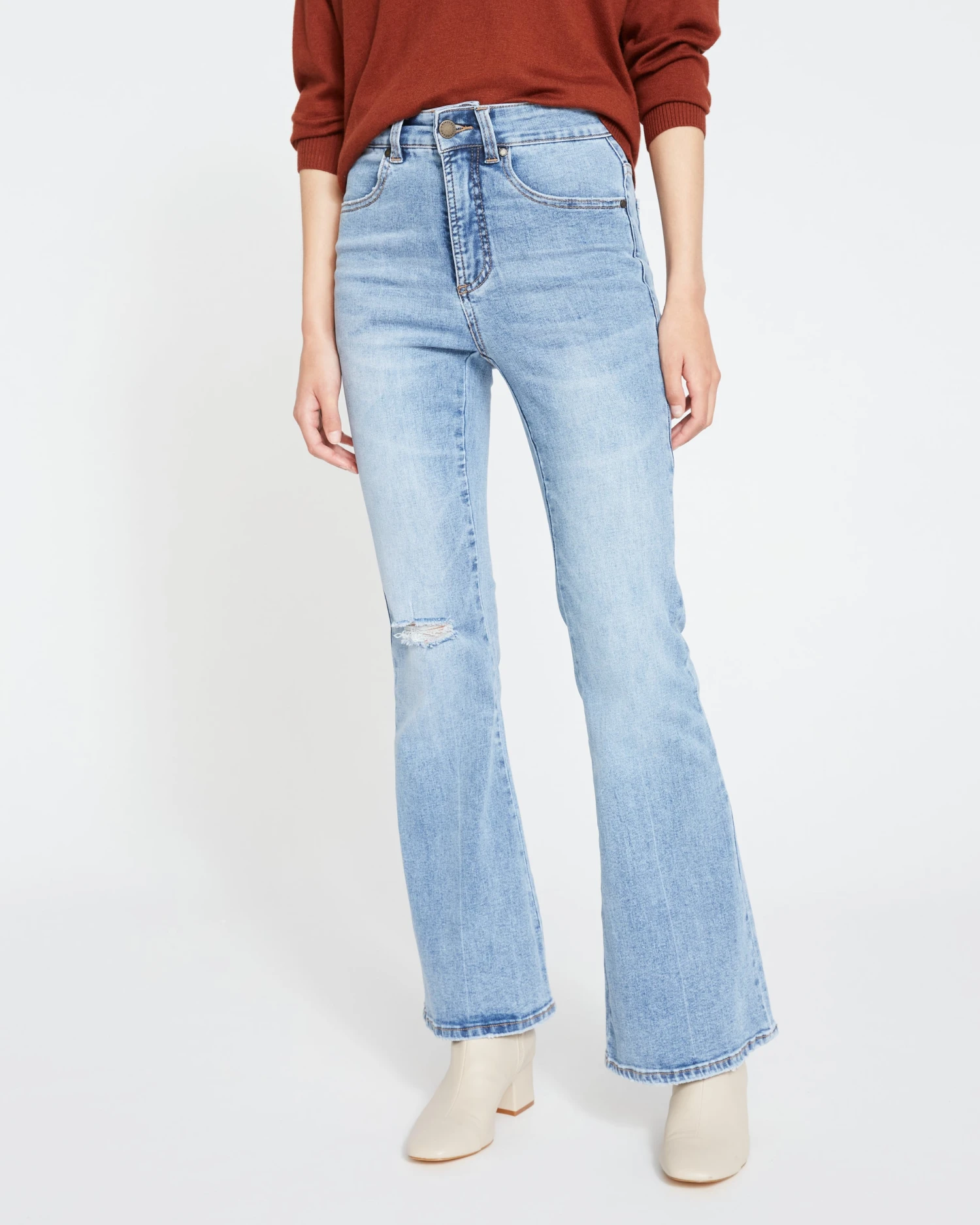 The Farrah High Rise Flared Jeans are the newest style in our denim collection. Both of-the-moment and classic, these flares are engineered to be super stretchy and specifically constructed for a perfect fit and unreal comfort. They sit close to the body and are fitted through the thigh, right down to the knee where they flare out into a refined retro-inspired leg.