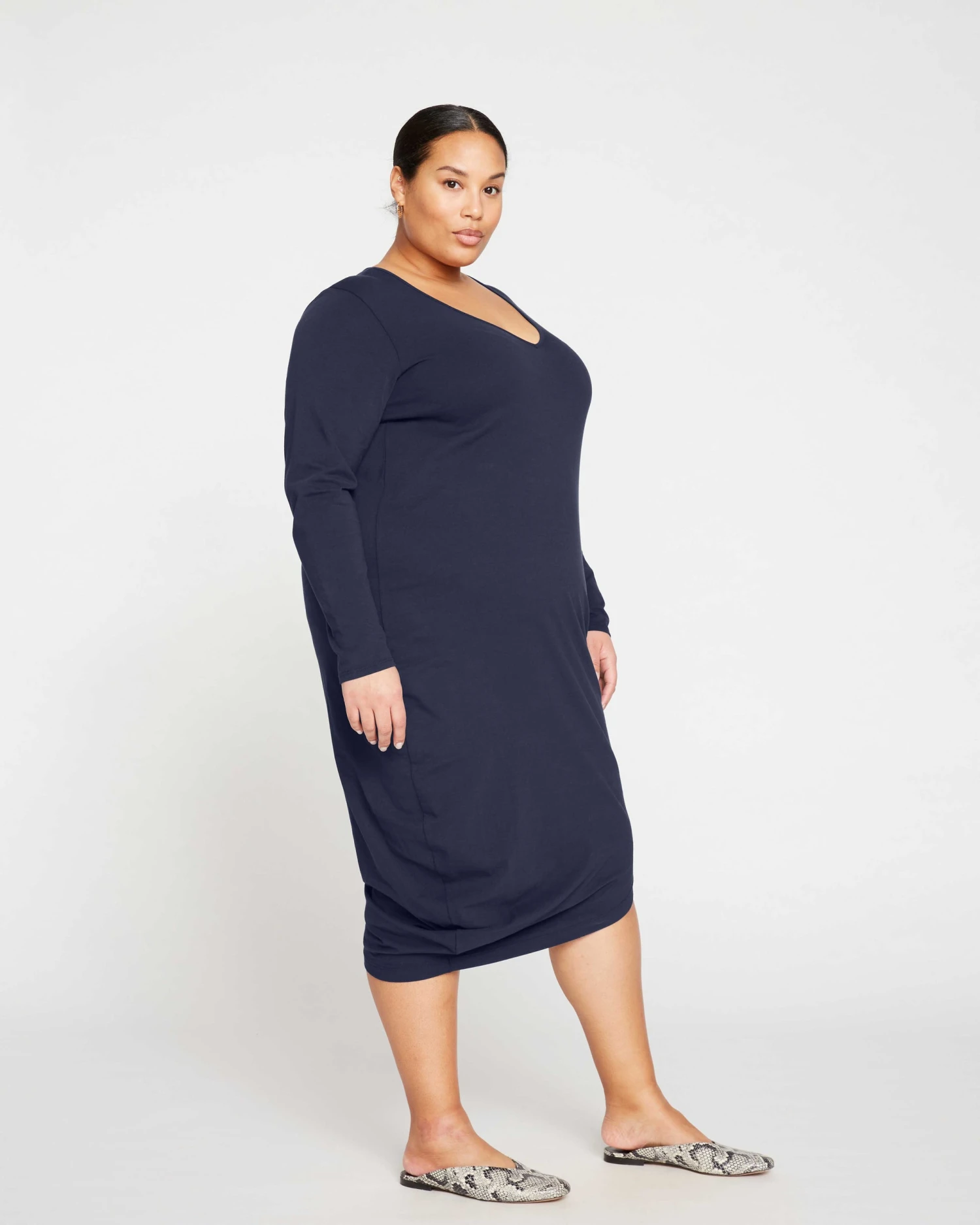 The dress that started it all – with a twist. With long sleeves and a narrow v-neck, this dress is versatile, stylish, and best of all, comfortable. It’s the effortless option you’ll reach for every time. Made from a Peruvian cotton blend we developed ourselves from the thread up, this piece is colorfast, has incredible bounce-back, and is pilling resistant.