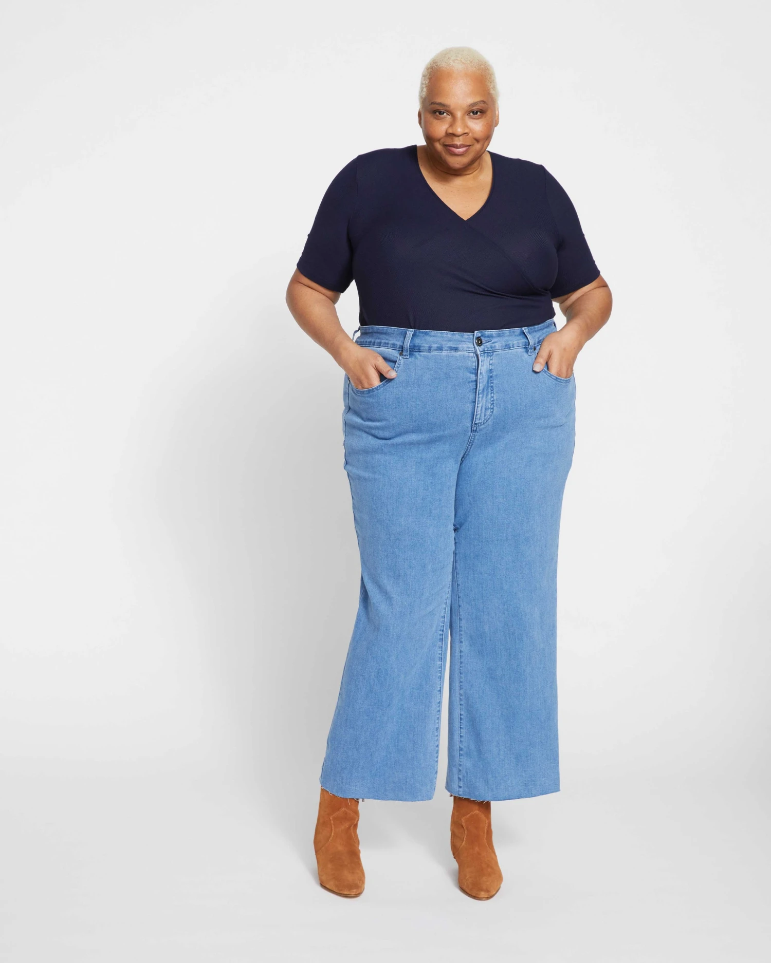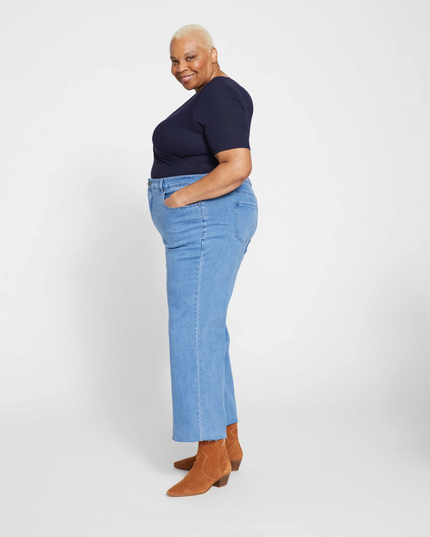 Look as chic as Jackie Kennedy on holiday in the Mediterranean. These cropped high rise jeans are fitted through the waist, hips, and thigh with a kick flare below the knee that hits just above the ankle. Made from our signature super soft and stretchy denim, this vintage-inspired pair features a raw-edge hem and looks perfect with flats, plus super cute when you want to show off the shaft of an ankle boot.