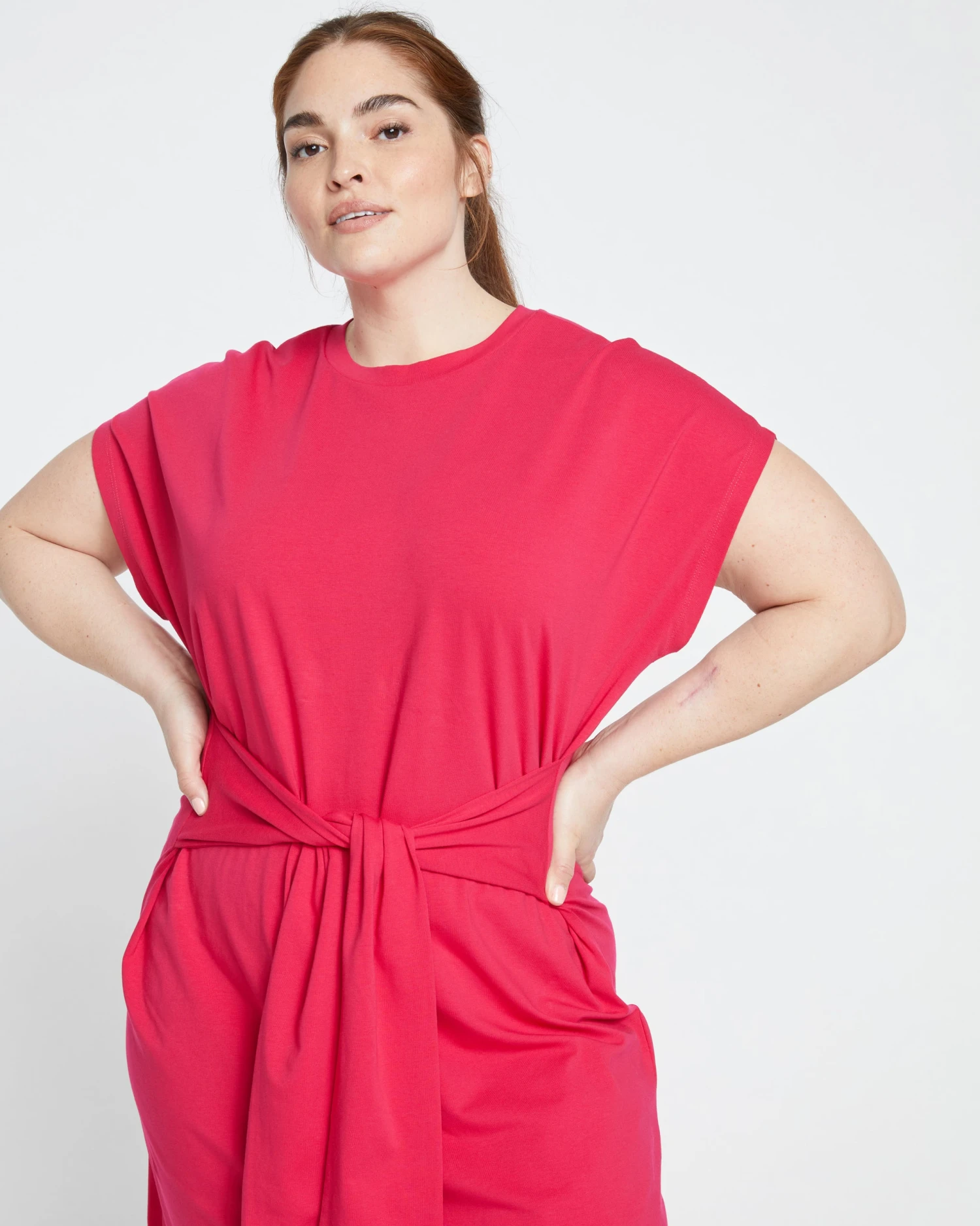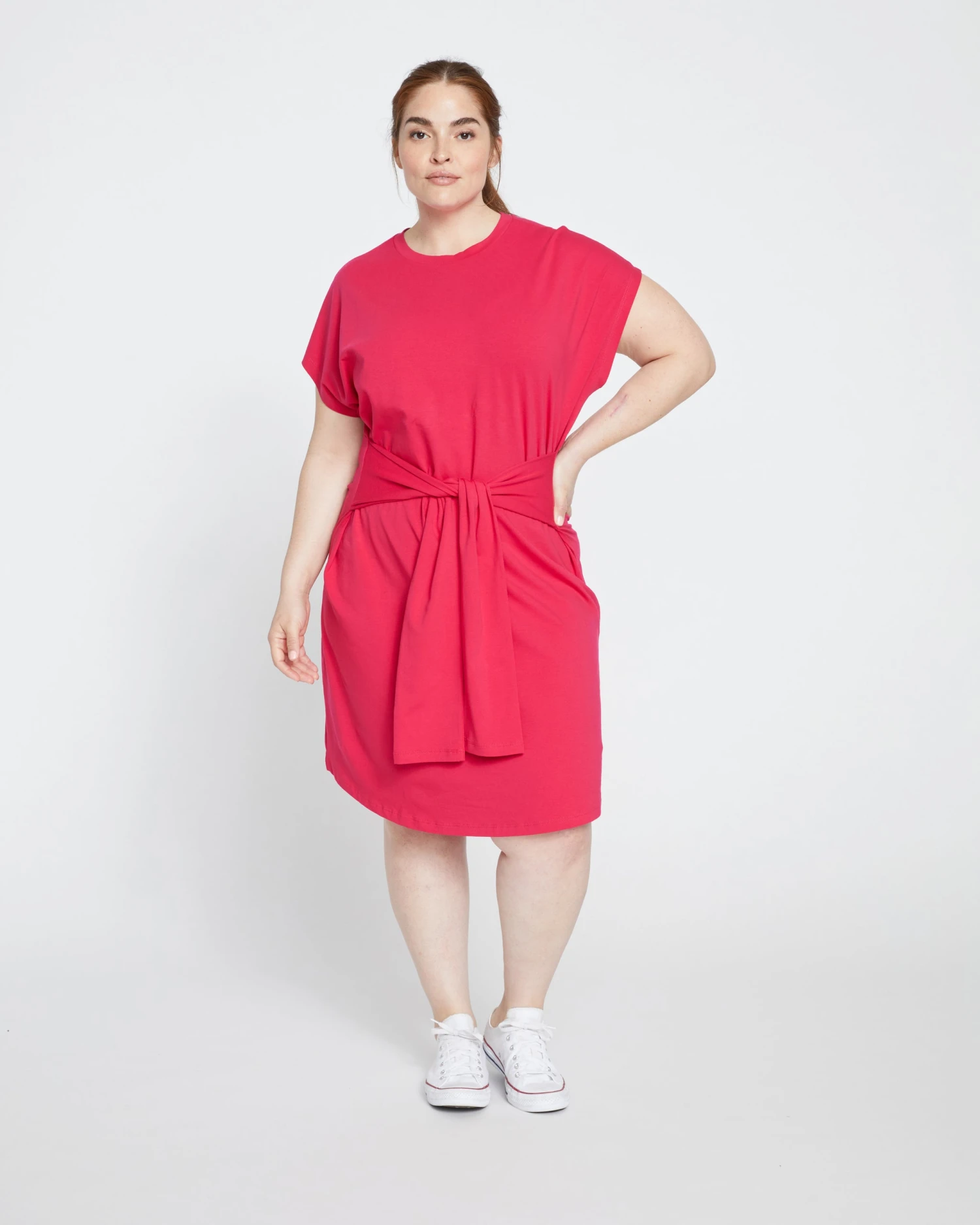 Casual meets cool in this tie-waist short sleeve jersey dress. Made from ultra-soft Peruvian cotton with two ties that wrap around you and cinch the waist.