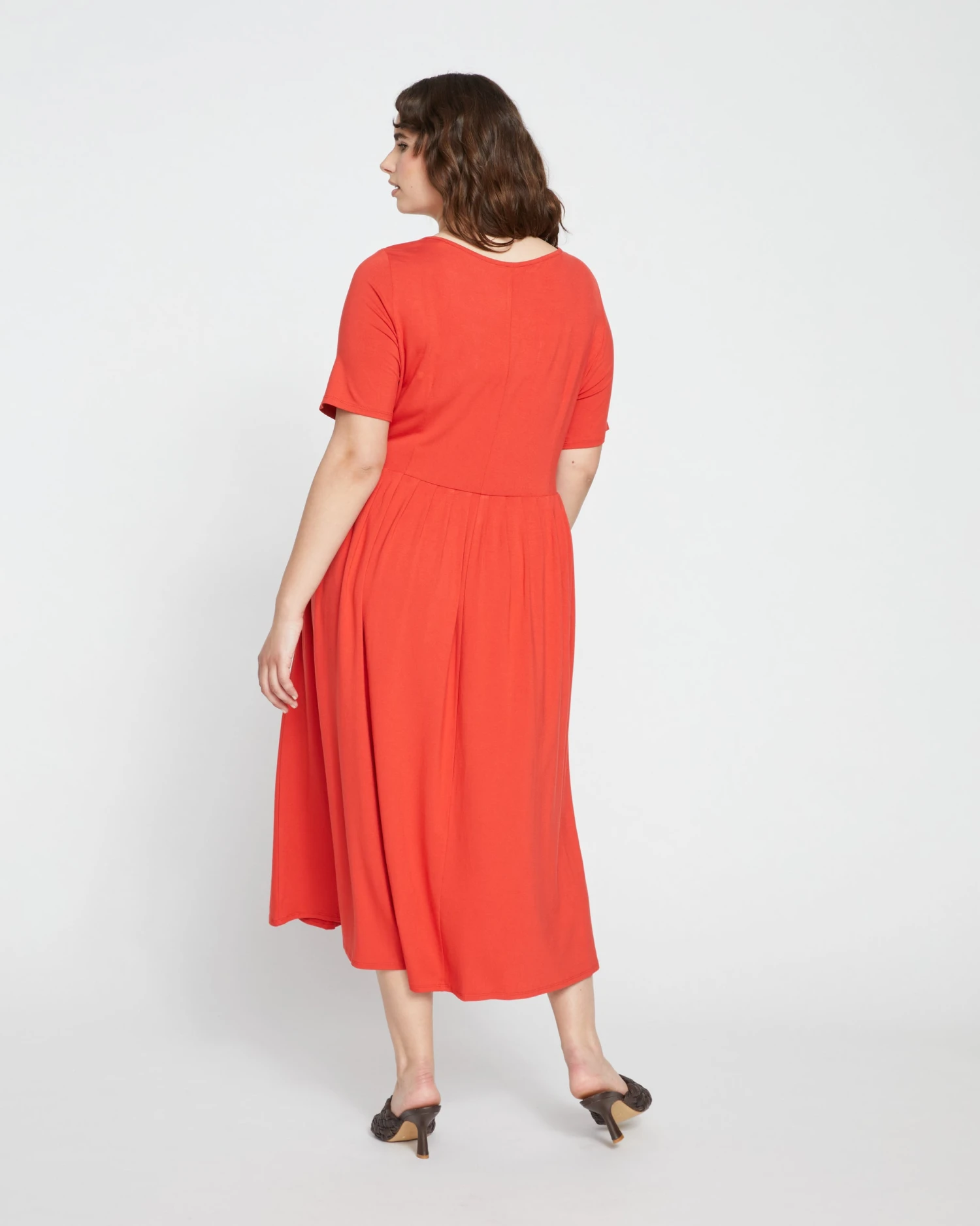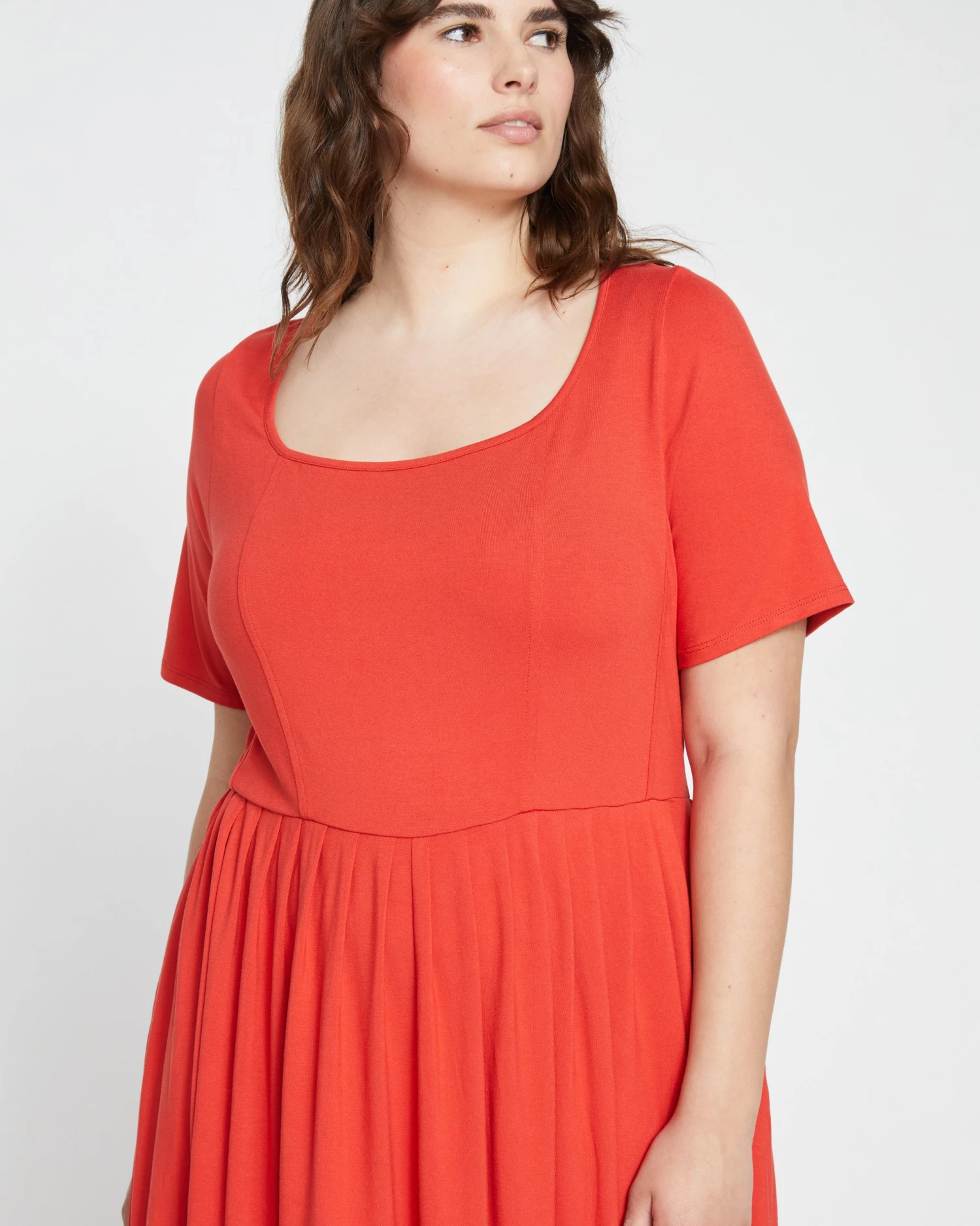 You’ve never felt a jersey dress like this before. It’s made from our softly structured divine jersey that has a luxe look and feel. The seamed bodice is very of-the-moment—it nods to the corset trend but has the comfort of your favorite pajamas. Additional details include the scoop neckline and gathered waist with a beautiful drape.