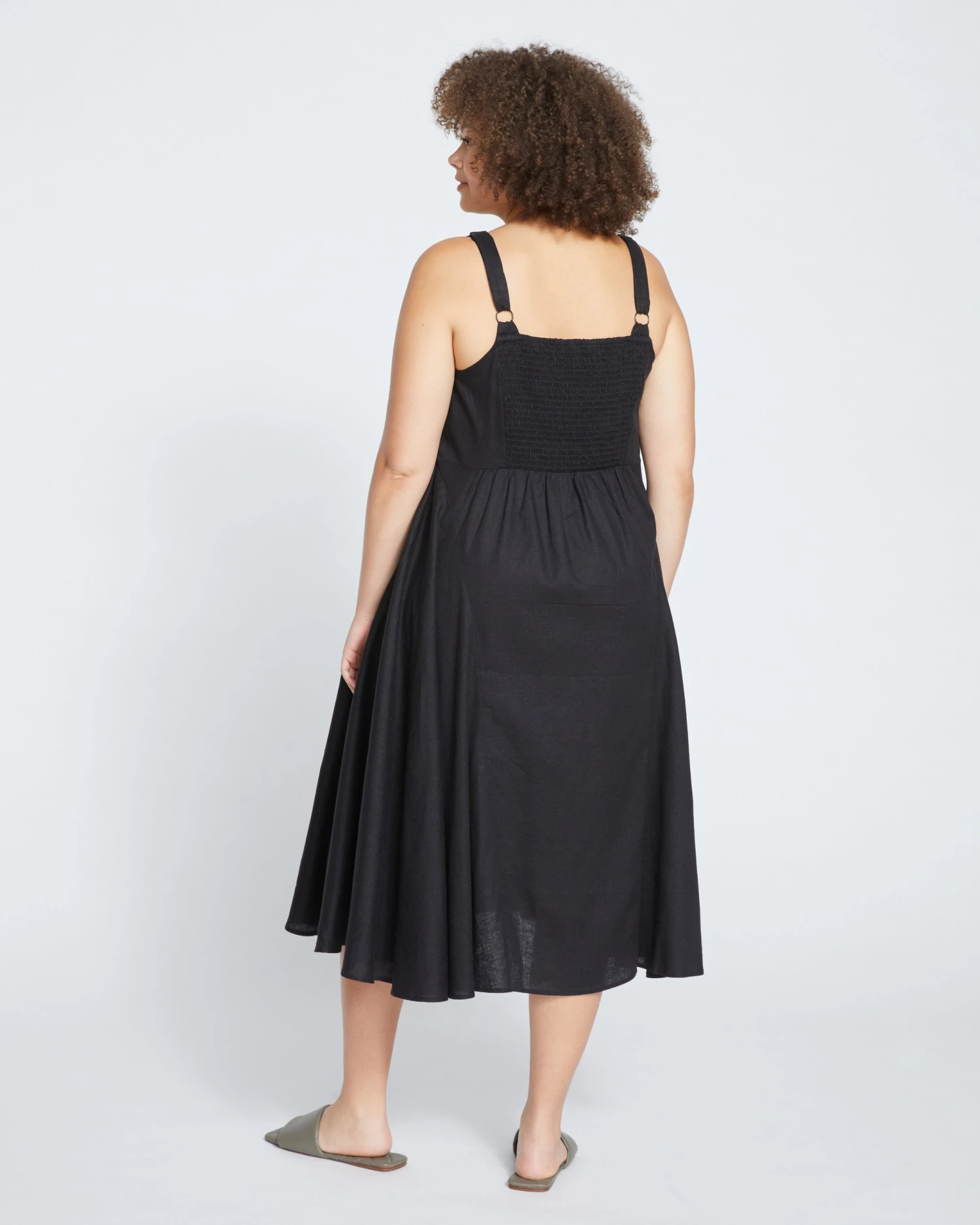 Careful. This beauty will make all of your other dresses jealous. Slip it on once and you’ll reach for it all season long. Oh, and get ready for compliments. Made from our signature stretch linen, it boasts a skimming fit with godet details at each side for volume and movement through the skirt. Additional details include the stretchy smocked back and adjustable straps.