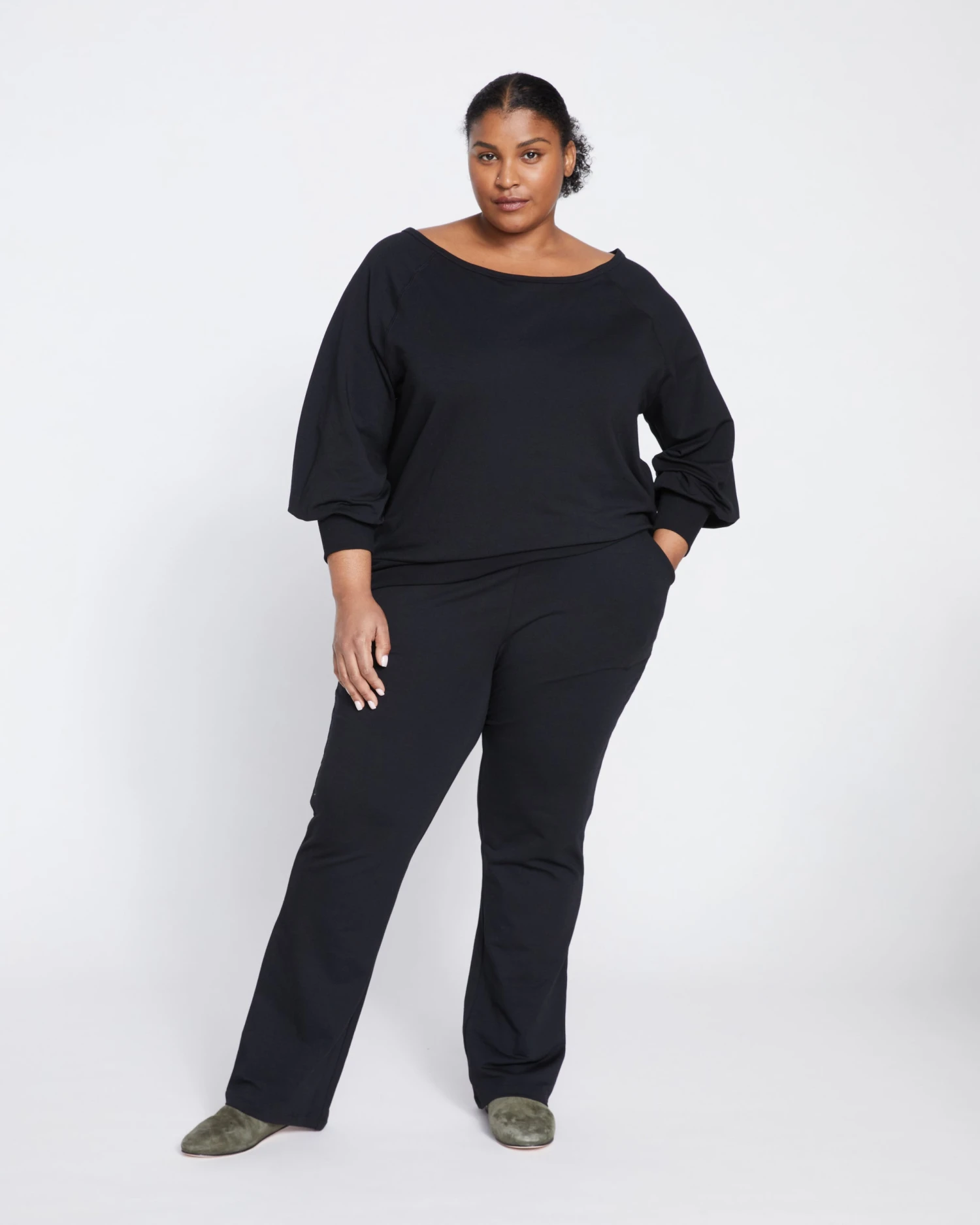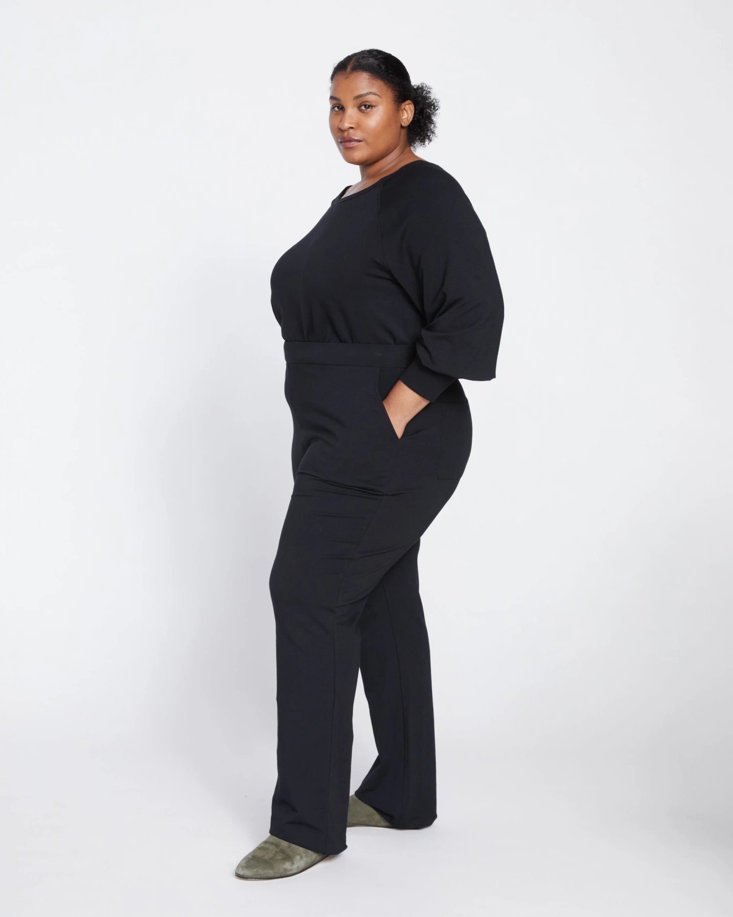The softness of sweatpants meets the silhouette of sleek trousers. Pull on these high rise flares to lounge around the house, run errands, or meet friends out. They’re so versatile. And they’ve got pockets (at the hips and at the back)! Plus, they’ll keep you comfy all day long.