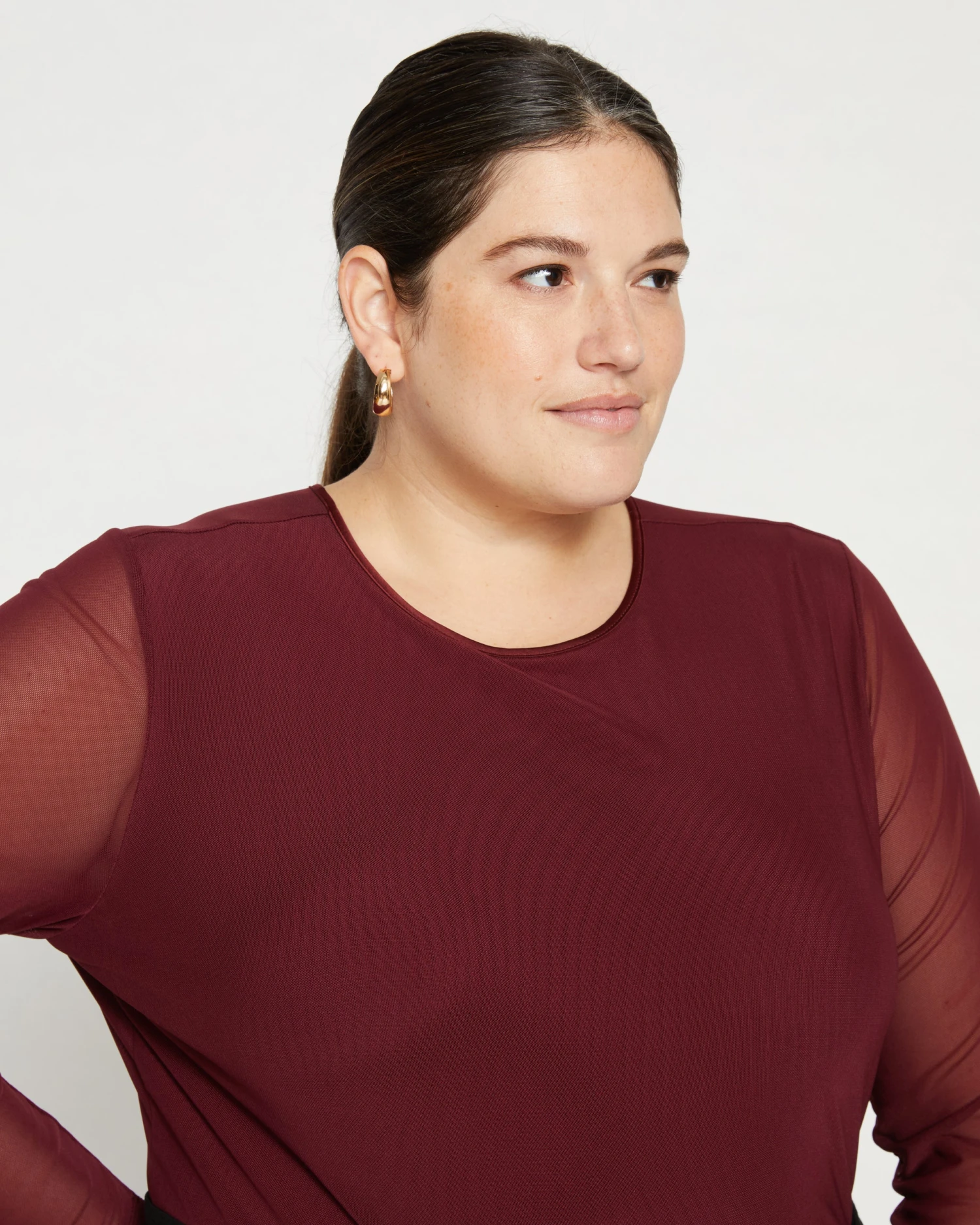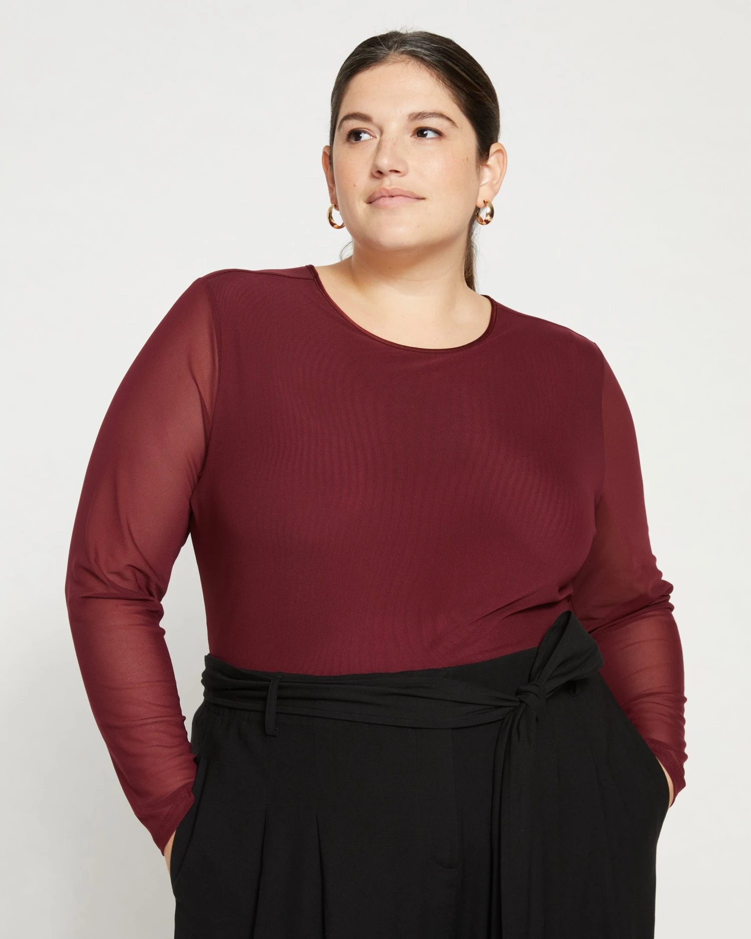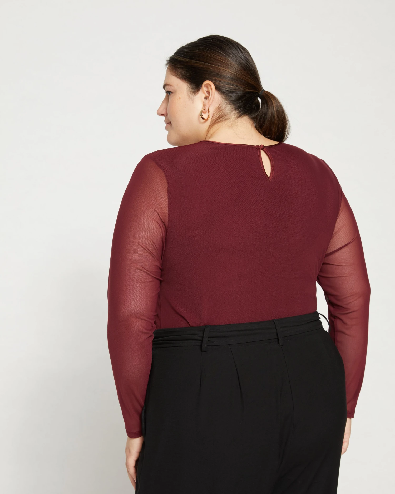 Flirty, easy, unexpected. This mesh top is so fun to style with everything from jeans to wide-leg pants. The body is lined with our super-soft liquid jersey and there’s a sweet keyhole at the back. Wear it under a jacket and wow everyone when you take it off. Forget party decorations, all anyone needs is you in this top.