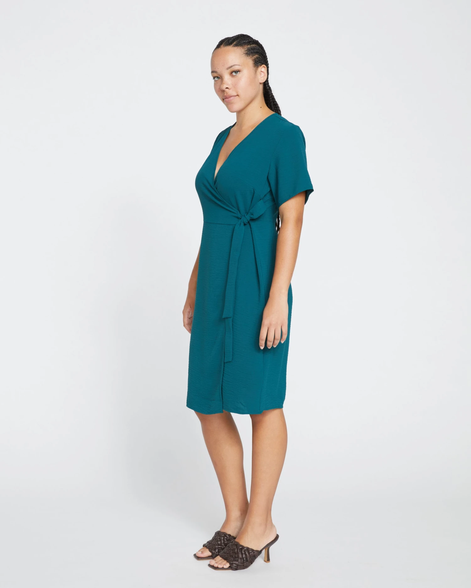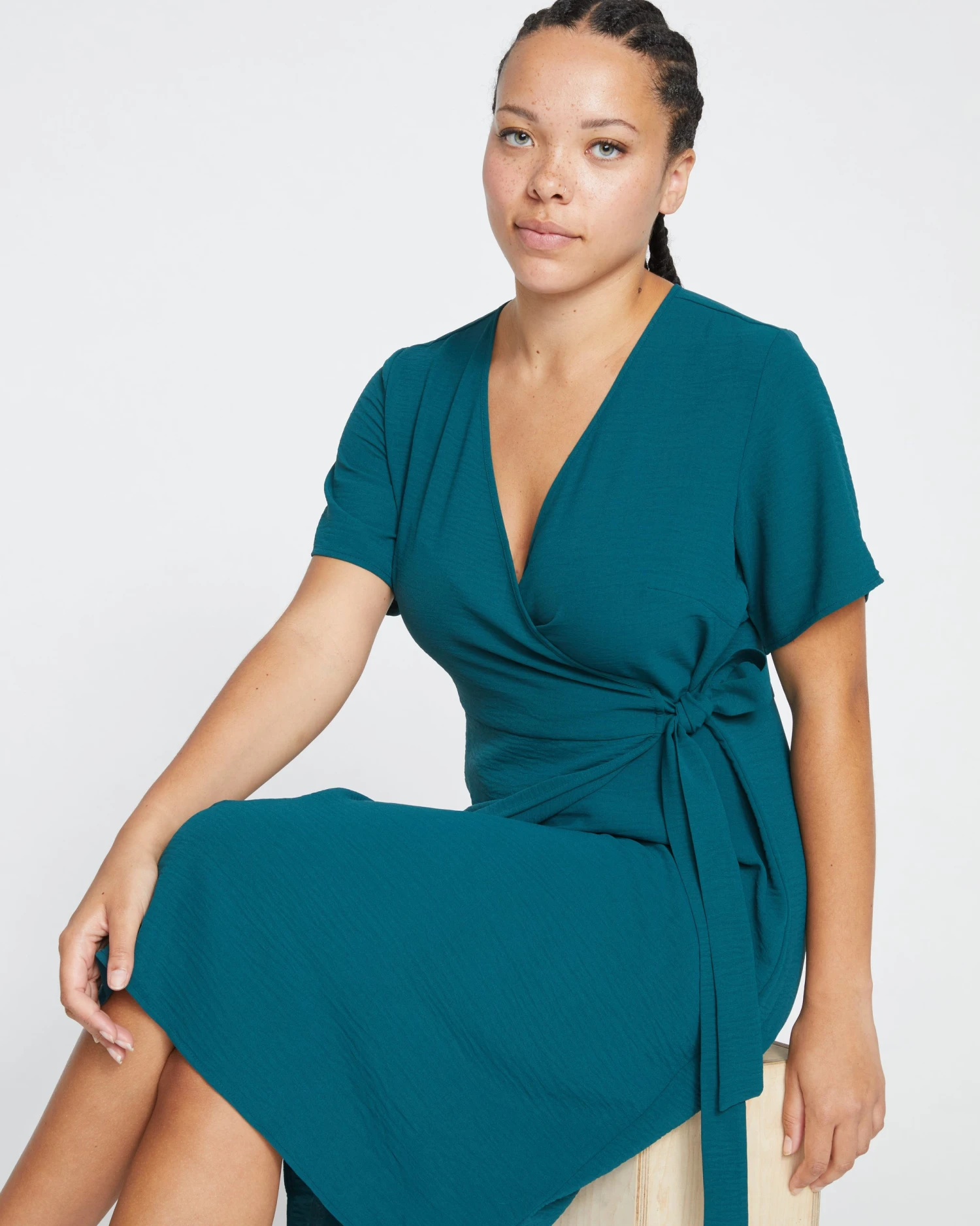 Become as beguiling as the ocean in this flowy wrap dress. You’ll make waves in our light and wavy crinkle crepe fabric as you sway and move throughout the day. It features a V-neckline with easy-fit short sleeves. Easy and airy enough for daytime, and striking at night.