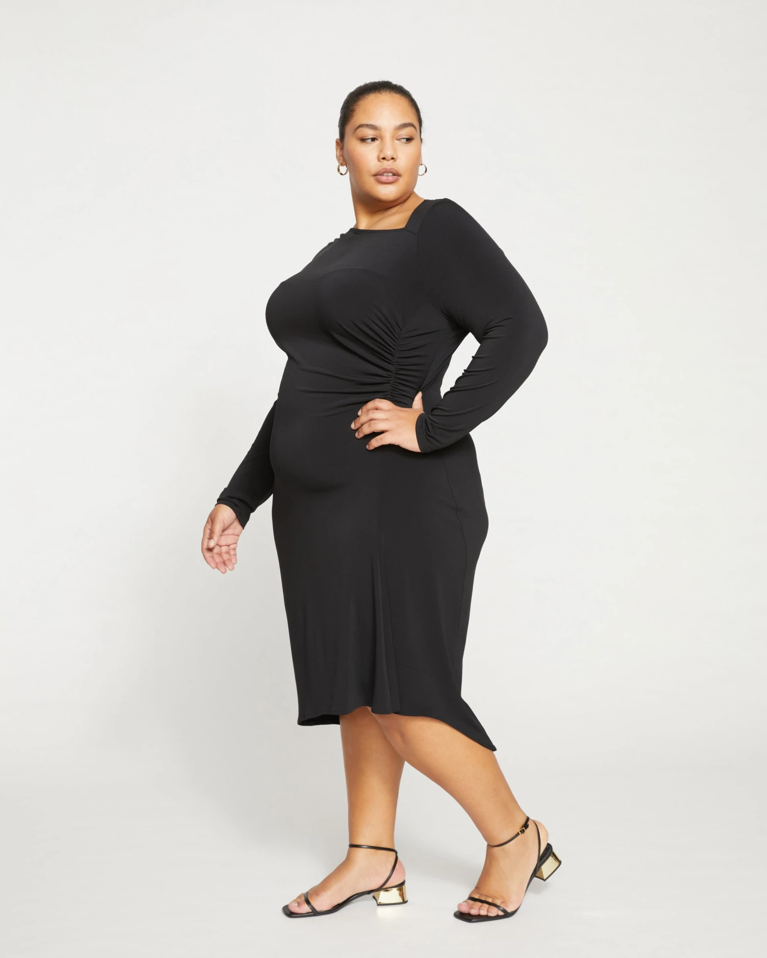 This dress has some of our favorite details. It’s made from our velvety-cool jersey that’s luxuriously smooth, soft, and silky. The body-hugging fit is gathered in some places and drapey in others. Plus, it features a unique asymmetrical neckline.